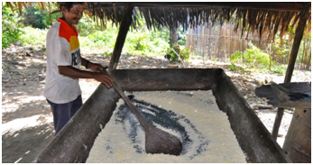 EQUIPAMENTO E PROCESSO PARA TORREFAÇÃO DE FARINHAS COM UTILIZAÇÃO DE MATRIZ ENERGÉTICA POR COMBUSTÃO LIMPA Resumo: Os fornos atuais para produção de farinha são pouco eficientes, apresenta elevado exagero da temperatura no ambiente, apresentando riscos de acidentes, como solução para o problema, foi desenvolvido um equipamento e processo para torrefação de farinhas, a partir da adaptação de um forno tradicional com matriz energética por combustão limpa, tendo como princípio o Eco design e a inovação tecnológica. Considerando dois tipos diferentes de usuários, o pequeno produtor e o produtor industrial, foram desenvolvidas duas alternativas de fornos para torrefação, cujas características envolvem maior ou menor investimento por parte da demanda produtiva. |