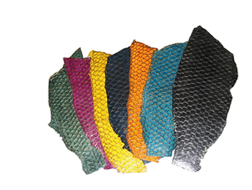 PROCESSO DE CURTIMENTO DE PELE EM COURO E COURO OBTIDO POR TAL PROCESSO Resumo: Processo de curtimento de pele de animais, preferencialmente peixe, o qual se utiliza de produtos naturais em substituição a produtos químicos industrializados incorporados tradicionalmente ao processo. Dentre os produtos naturais, a presente invenção utiliza-se de uma enzima proteolítica de folha de mamoeiro e faz substituição de ácidos convencionalmente utilizados por casca de fruto e da substituição de sais de cromo por cascas de árvores, obtendo um couro ecológico de qualidade superior aos couros já existente. |