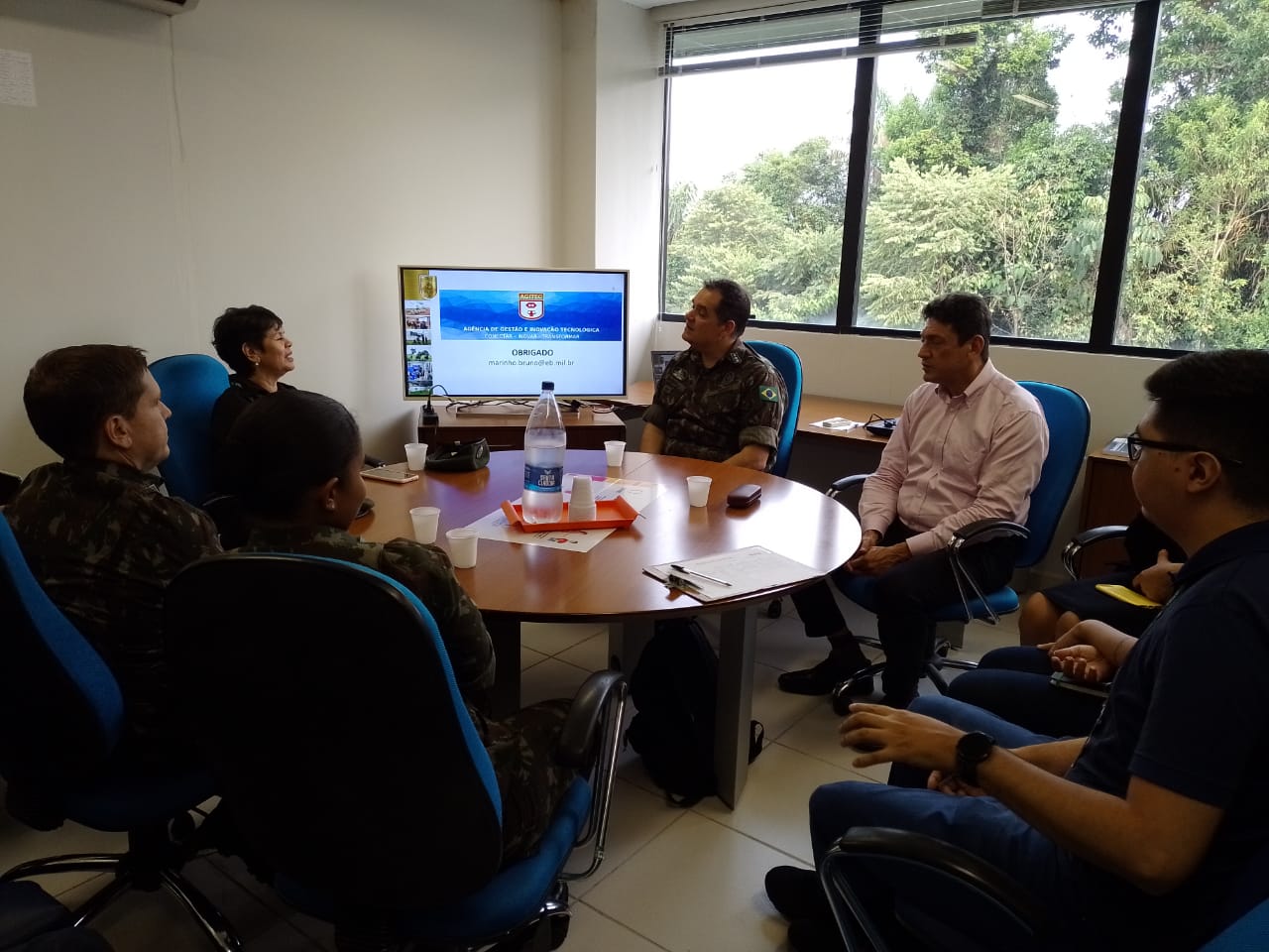 A Pró-reitoria de Inovação Tecnológica (PROTEC), recebeu a visita da Comitiva da Agência de Gestão e Inovação Tecnológica do Exército Brasileiro (AGITEC/Exército BR). Comandada pelo Subchefe da AGITEC, Ten.Coronel Bruno Costa Marinho, os membros solicitaram a visita a fim de conhecer a estrutura e atual composição do Núcleo de Inovação Tecnológica da UFAM, além de realizar a troca de experiências com os profissionais que atuam com a temática da Gestão da Inovação e Propriedade Intelectual.